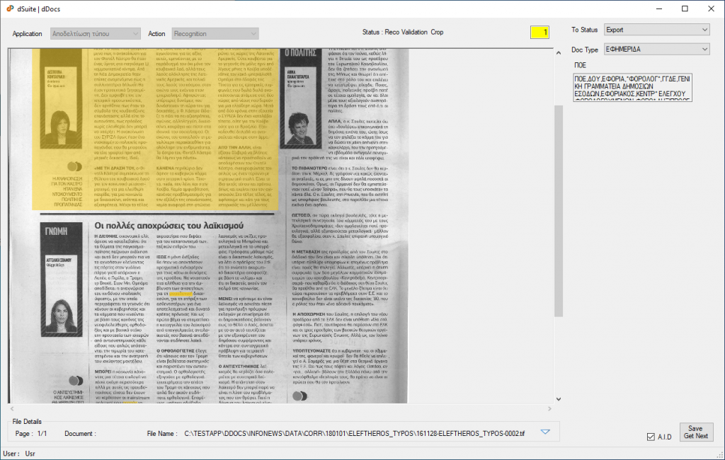 Η πλατφόρμα dSuite που υποστηρίζει την συγκεκριμένη διαδικασία παρέχει διαδικασίες για την σάρωση, την αυτόματη αναγνώριση και την οπτική διαχείριση μέσω ενός εύχρηστου